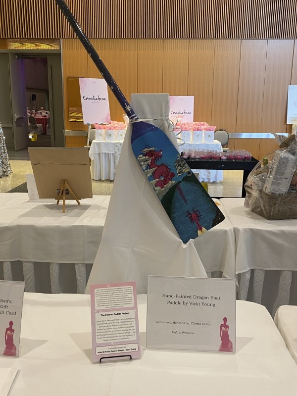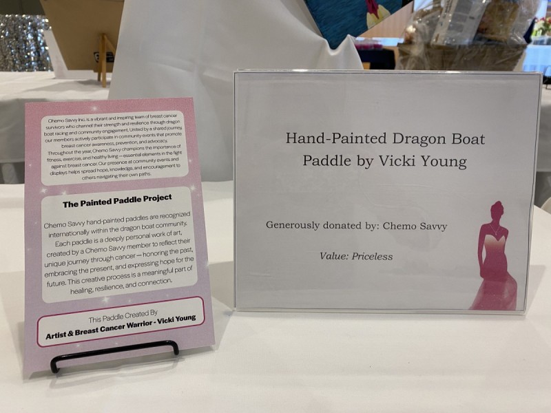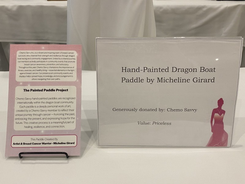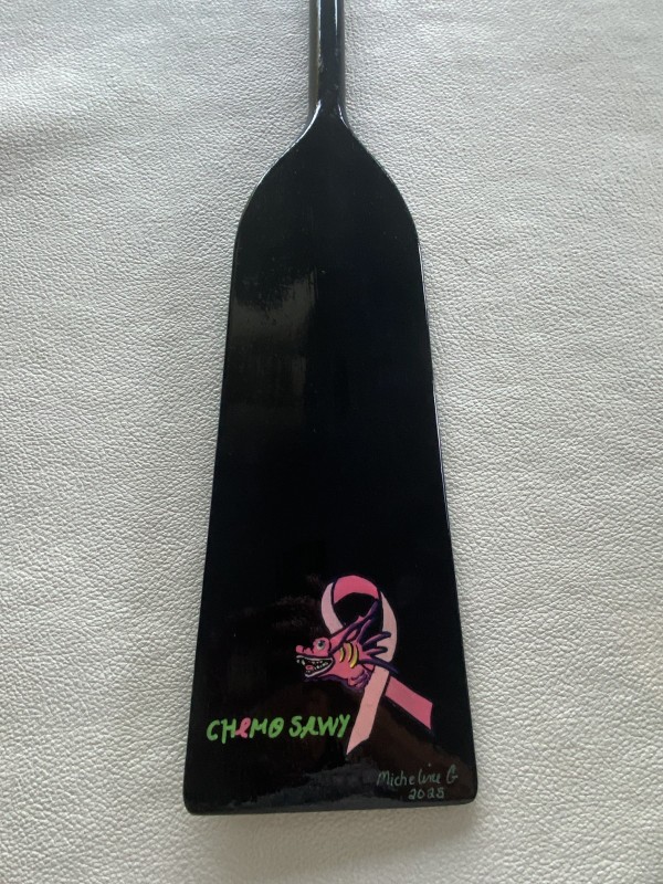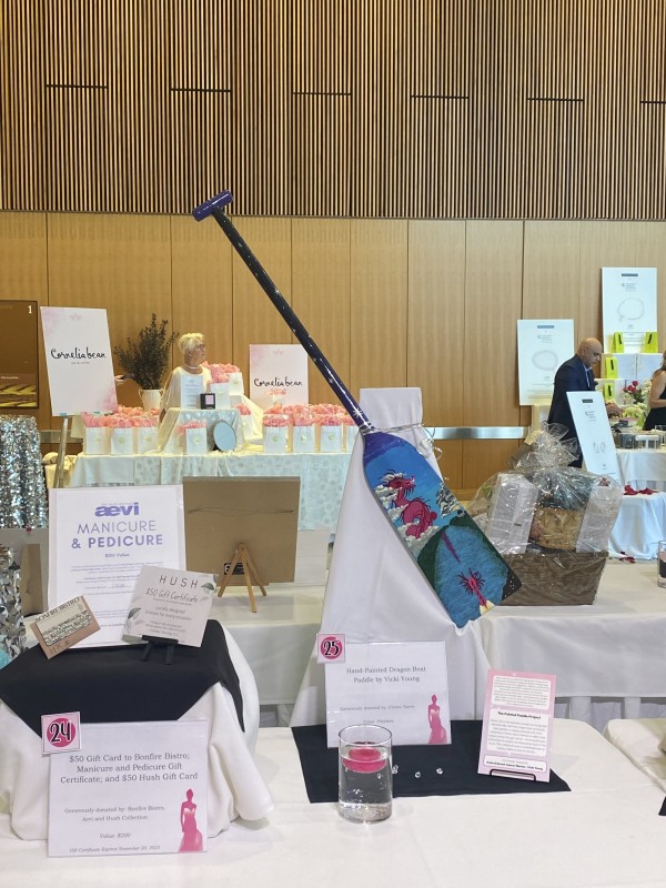 Two of our members painted beautiful paddles as a team donation for the silent auction held at the Guardian Angel Benefit on October 19, 2025. All funds raised through the Guardian Angel Benefit stay in Manitoba to help women facing a lifechanging cancer diagnosis now or in the future by supporting research, clinical trials as well as ensure the best possible physical and emotional care.